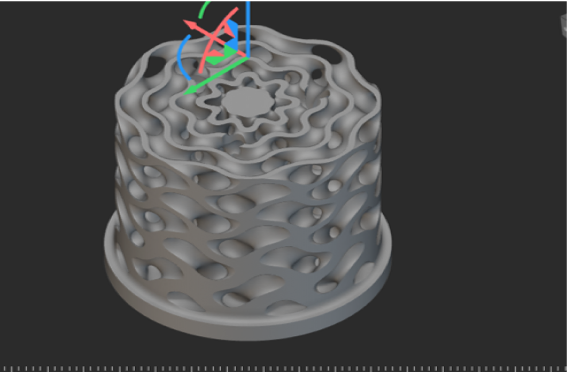 The initial design selected for printing was the iteration shown in Fig. 2. However, after importing the model into the slicing software, it became apparent that the overhangs exceeded the limits for Selective Laser Melting (SLM), and conventional support structures were not feasible due to the inability to remove them during post-processing. This highlighted the need for design adjustments to ensure manufacturability while maintaining the desired gyroid geometry.