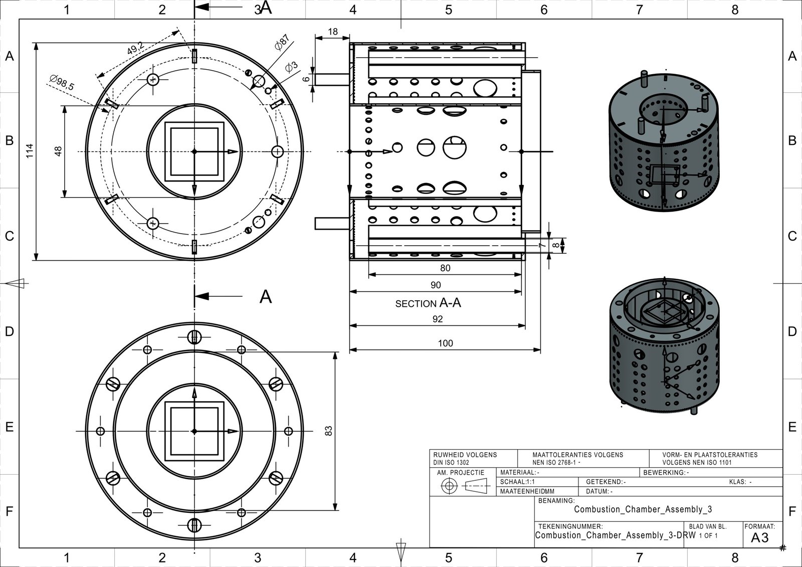 Combustion Chamber Assembly – Diffusion-based chamber designed to stabilize the flame and enable efficient fuel–air mixing. Made from multiple laser cut components.